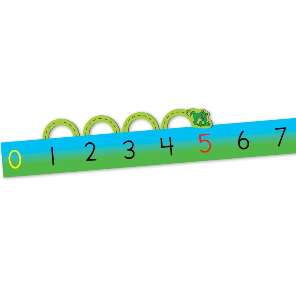 One magnetic number line * 68″ by 2″ * One magnetic frog * 2 3/4″ by 1 1/4″ * 30 magnetic arrows * 1 1/2″ by 1 1/2″ each * 36 magnetic jumping pieces * 2 1/4″ by 1″ each * Really Good Stuff® Activity Guide