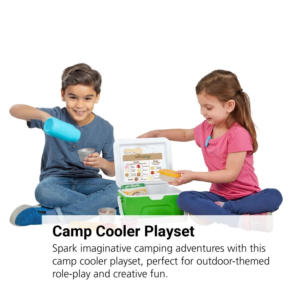 27-piece pretend play camp cooler with play food to pack for imaginative camping trips, picnics, or trips to the beach