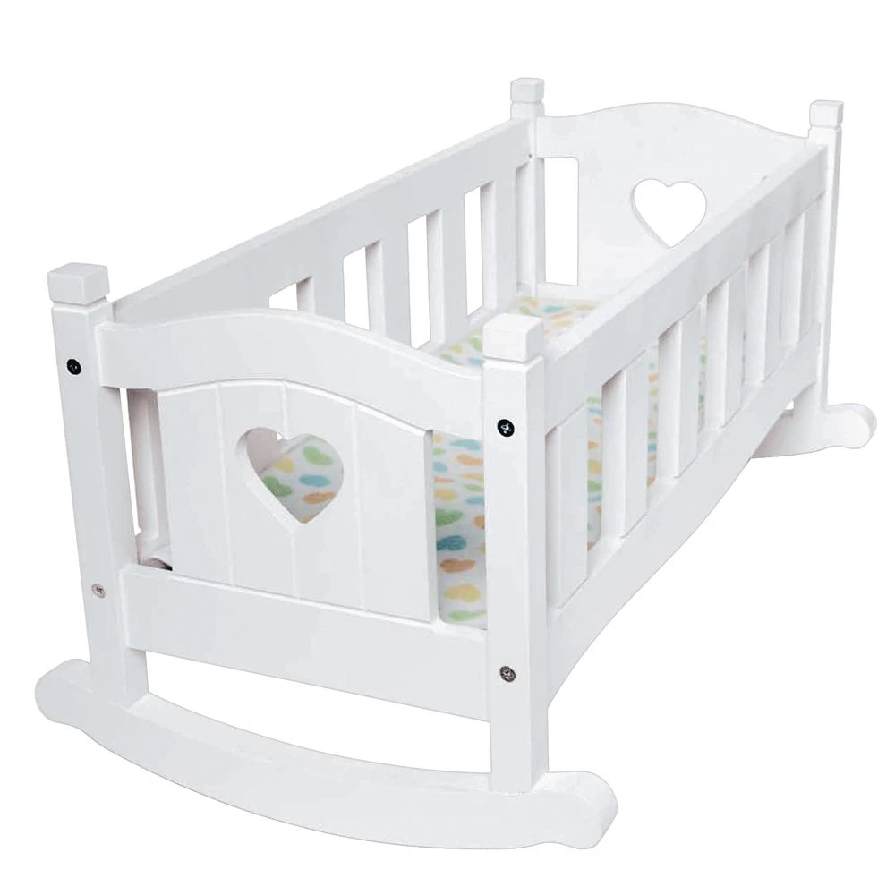 Rock to sleep favorite dolls and stuffed animals in this realistic and classically styled wooden cradle that suits any décor! Made to fit dolls up to 20 inches tall, the durable white rocking cradle with a wipe-clean surface stands approximately 10 inches tall. Clear instructions make the cradle easy to assemble with just a screwdriver (not included). Mine to Love® dolls and accessories encourage empathy and help kids express themselves as they explore grown-up roles and responsibilities. A child’s confidence and self-esteem blossom and grow with each nurturing moment of imaginative play!