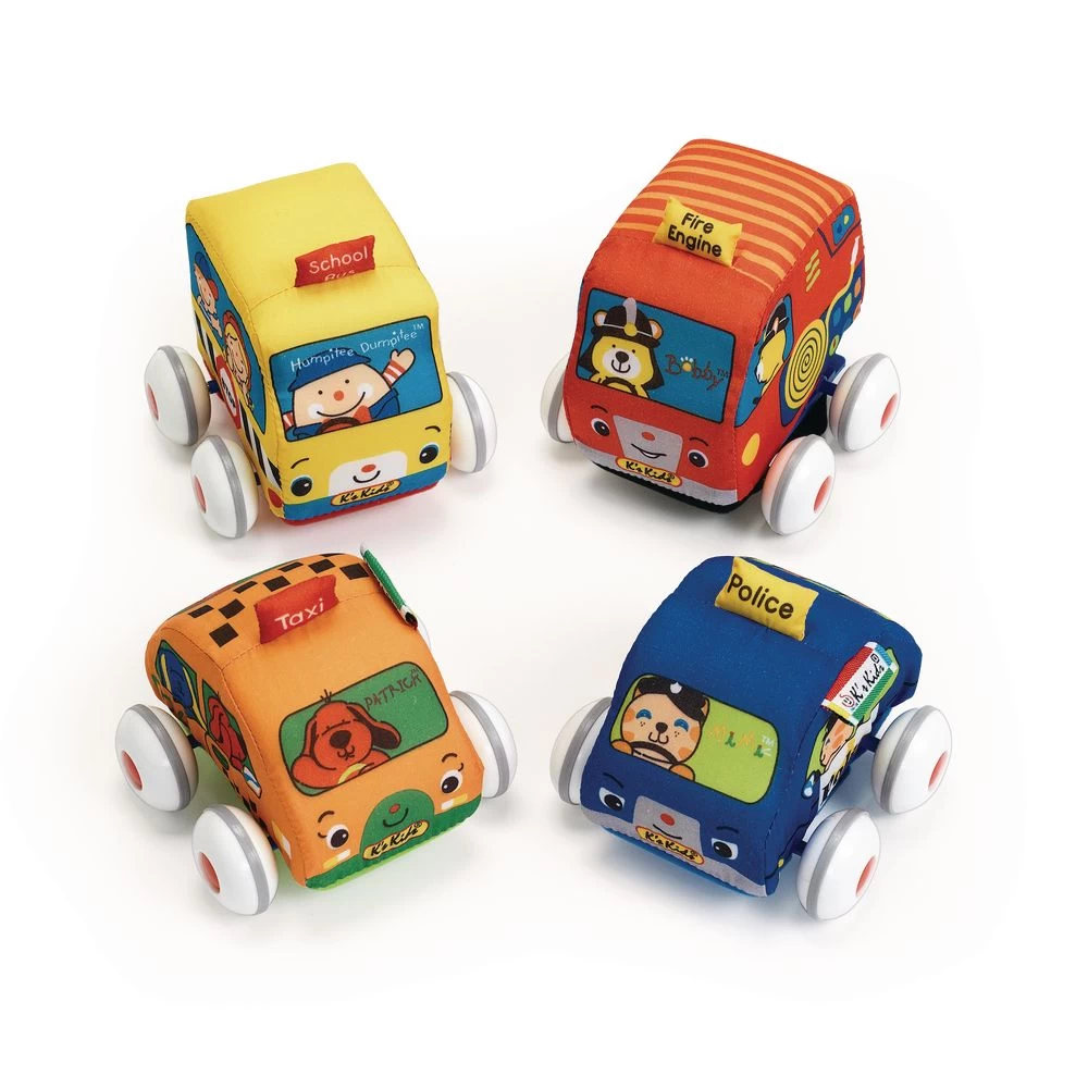 Little ones will love the “pull back” action of these cute, soft cars. A great way to share joy with peers while playing.