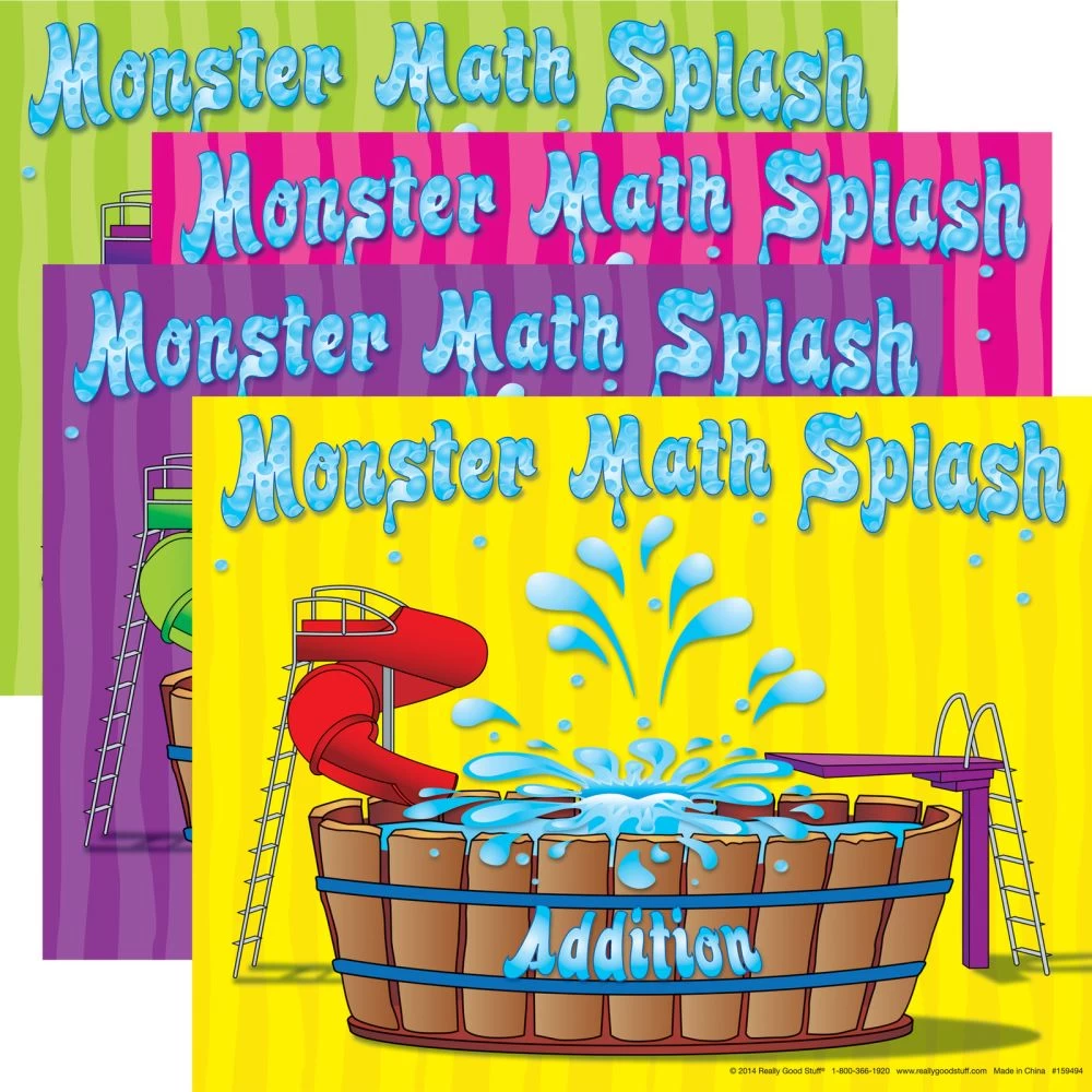 - INCLUDES: 4 game mats (Size: 11″ by 8-1/2″ each), 80 monster tiles (Size: 1-1/4″ by 1-1/4″ each), 1 double spinner (Size: 9-3/4″ by 4-3/4″), 1 laminated task card (Size: 9″ by 6″), Really Good Instructional Guide, and 1 hanging plastic bag (Size: 11″ by 13-1/4″).