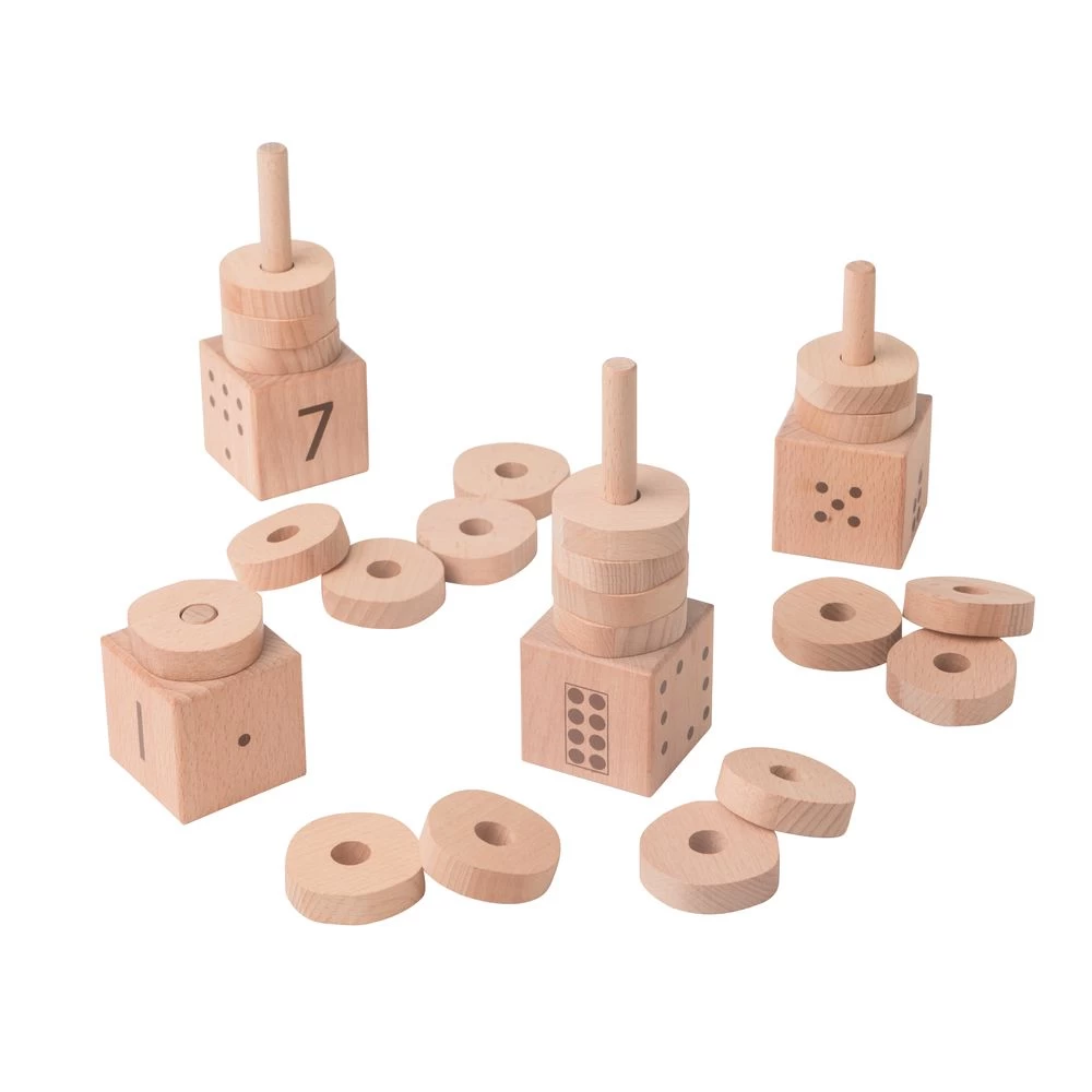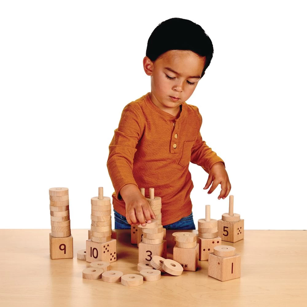 This inviting wooden number stacker will teach early number concepts by helping children to make connections within and between numbers to 10. Includes ten number posts and 55 rings made from durable, responsibly sourced beech wood.