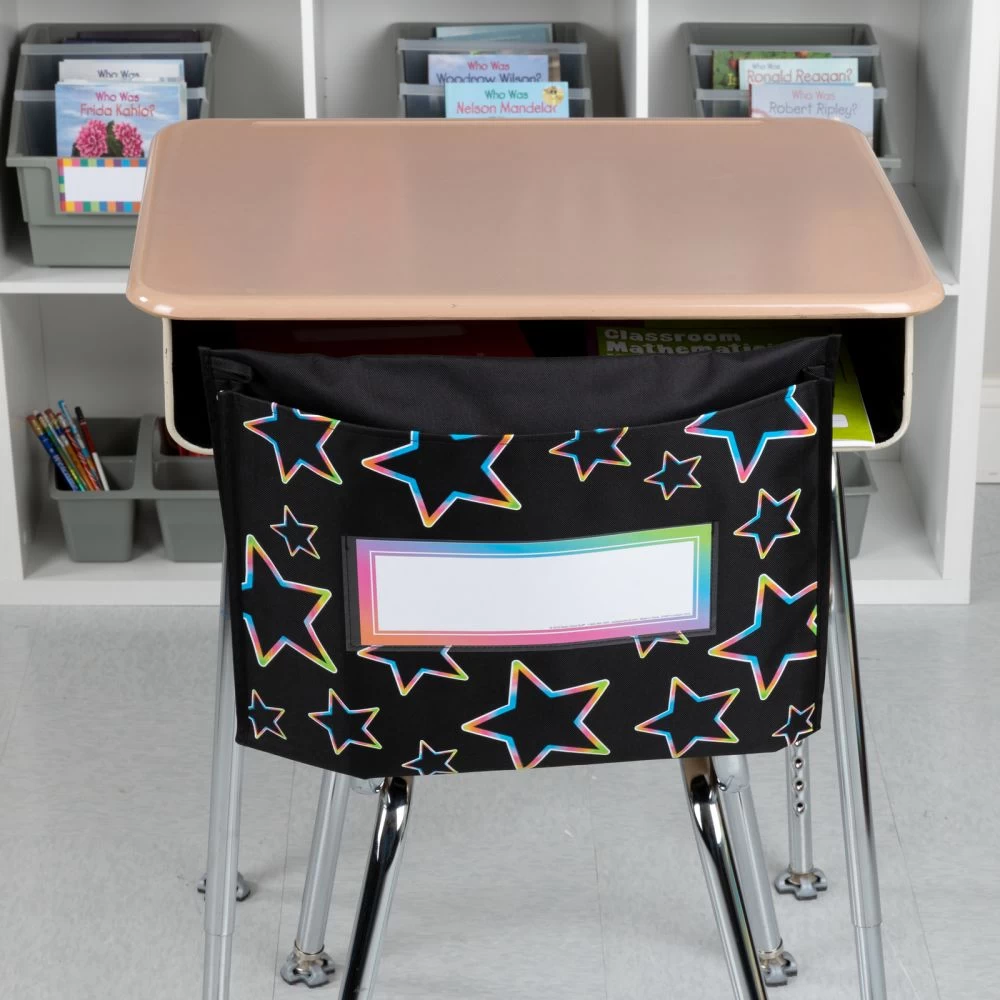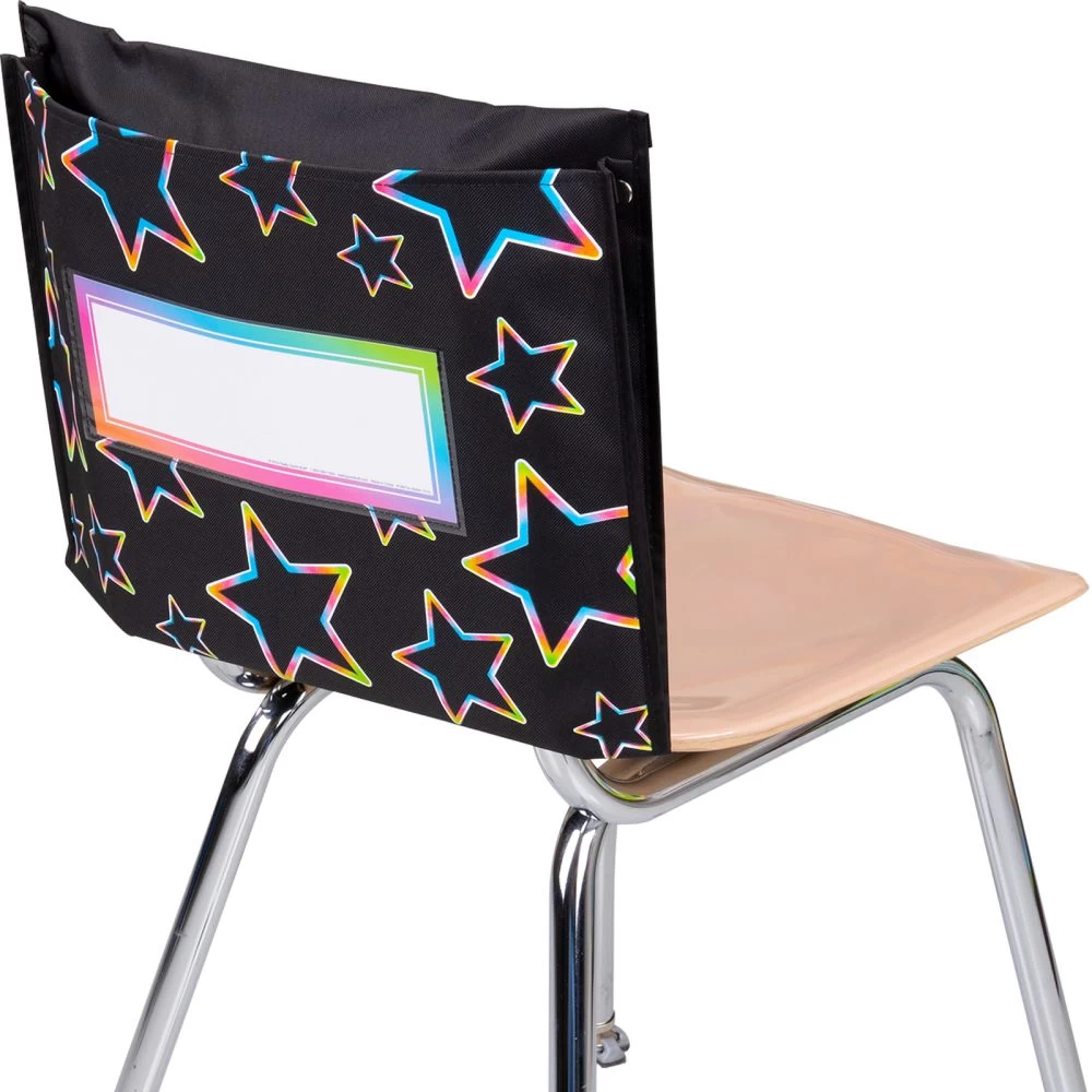 - CLASSROOM ORGANIZATION: This pack includes 6 neon pop store more deep pocket chair pockets with 6 name tags. Really Good Stuff Neon Pop Store More Deep Pocket Chair Pockets help students organize larger materials and maximize desk space with an extra deep pocket. They offer a roomy pocket, clear plastic sleeve which hold a replaceable name tag, and a sturdy loop for hanging. Choose a style and color that best fit your needs and classroom.