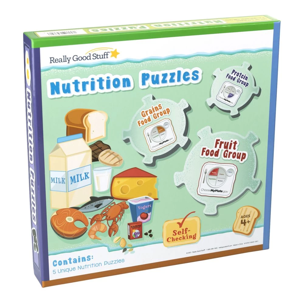 This puzzle set comes with 5 circular puzzles that will help reinforce different types of foods. Use them to teach your child or students about nutrition or allow them to use them independently. After assembling each puzzle simply flip the puzzle over to reveal a self-checking design.