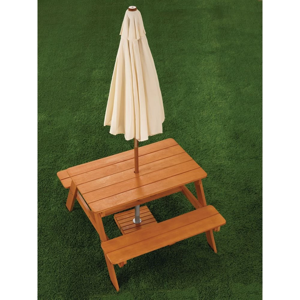 Add to your outdoor classroom or backyard! This picnic table with an umbrella is the perfect seating area for either teaching or socializing. Kids will love sitting with their friends on a hot day under the shade of the umbrella. A fun place to snack, craft, or read together.