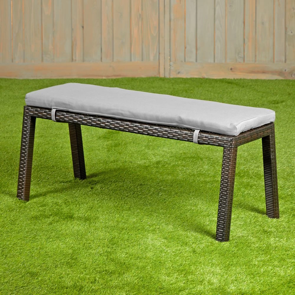 - DIMENSIONS: Bench measures 42-1/2″ L x 13″ W x 16-4/5″ H and provides plenty of seating. No assembly required. Cushion has Velcro ties that securely attach beneath the bench to make for a comfy seat. The legs are slightly angled to make the bench extra sturdy.