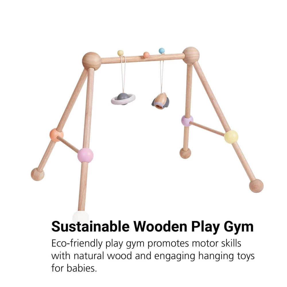 - WHAT YOU GET: Triangular frame with 2 suspended toys. Comes with a rocket and planet toy that is detachable from the top support.