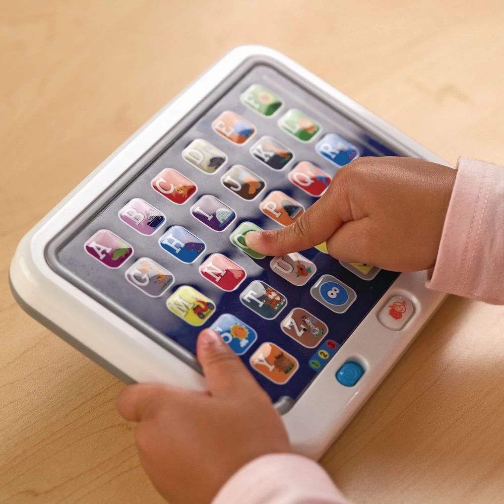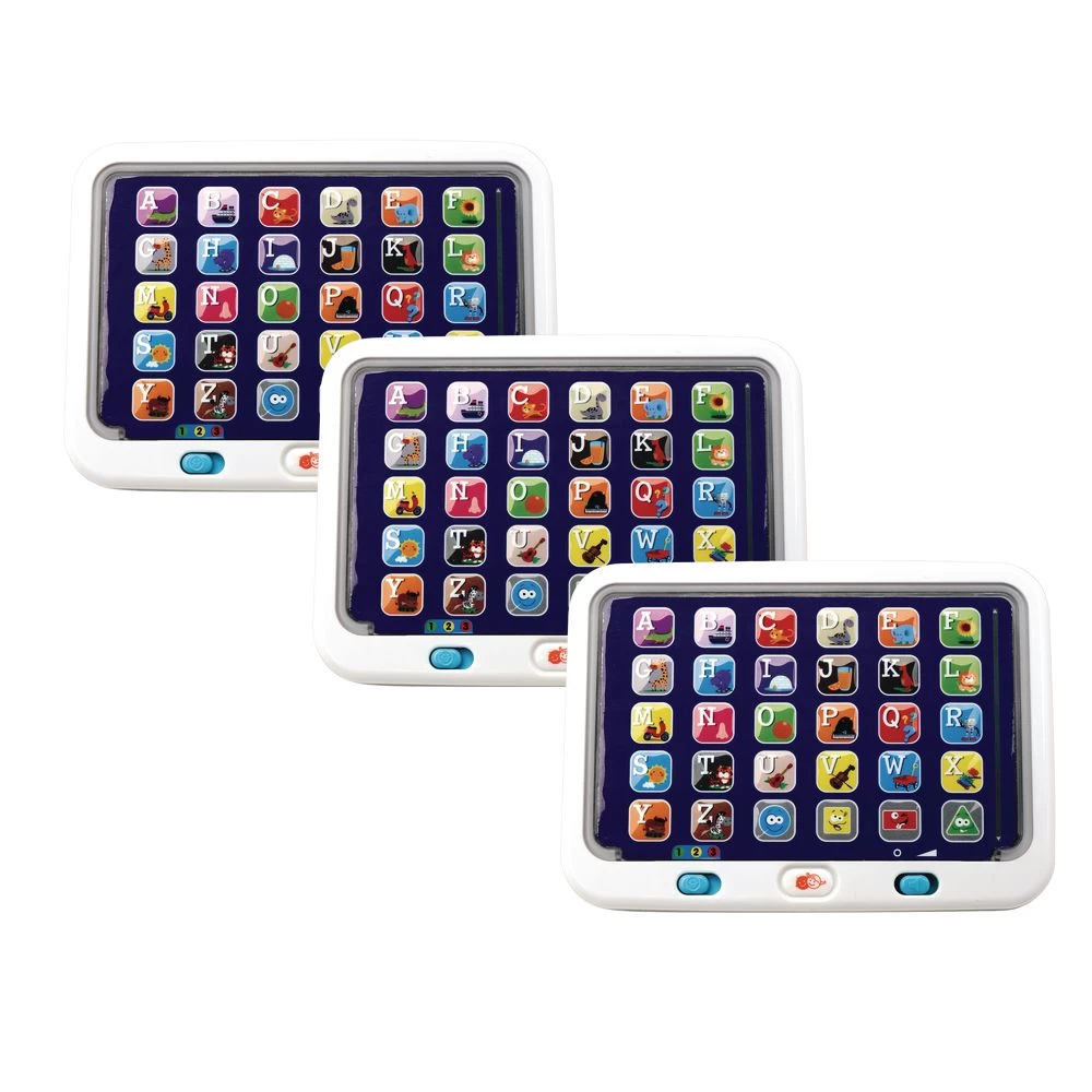Three tablets are three times the fun! The Learn and Wonder Tablet has 3 interactive & entertaining levels of play. Children can explore & learn while playing on a tablet that looks like mom or dad’s. Not only is the learn and wonder tablet fun to play with it will teach your child all about their ABCs, animals and musical sounds. The learn and wonder tablet has 30 interactive buttons and more than 205+ songs, melodies phrases and sounds. The tablet is designed to encourage language development, hand-eye coordination and imagination. Level 1 explores letters and first words. The bright colors and melodic music attracts and keeps your toddler interested and engaged. Level 2 introduces different sounds and short sentences. Inspiring your little ones’ imagination as well as developing important speech and language skills. Level 3 Challenges how quick they have learnt then allowing them to progress. Encouraging and enhancing learning when they are ready. Uses 2 languages; English and French.