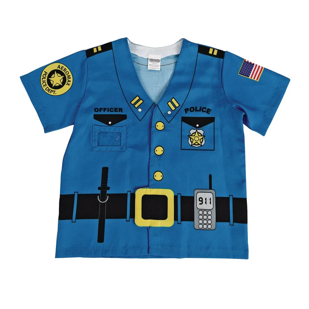 Career costumes promote self-esteem and encourage creativity and imaginary play! This fabric Police Officer costume is especially designed for young children and have realistic details. Costume is made of machine washable cotton/poly blend with a hook-and-loop closure.