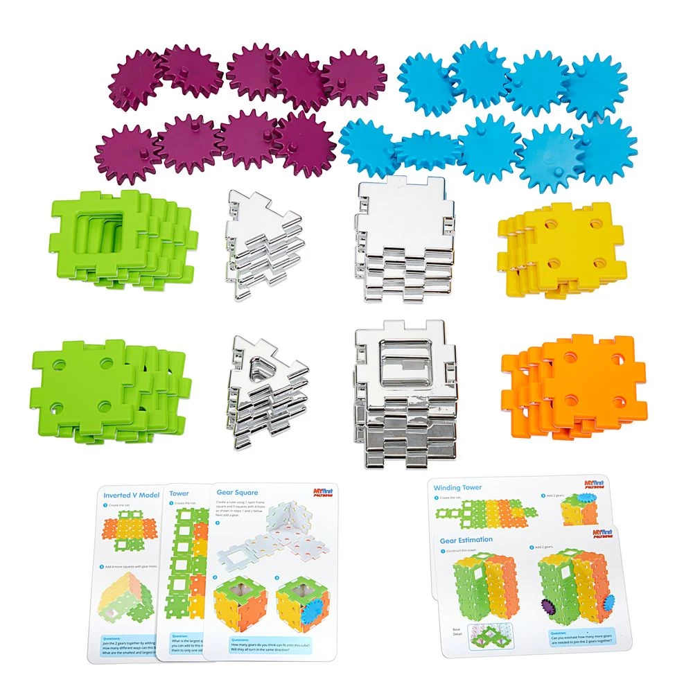 This combination of 36 piece gear set and 16 piece mirror set is ideal for introducing younger children to the concept of STEM using gears and mirrors. Each set is designed to fit with the other.