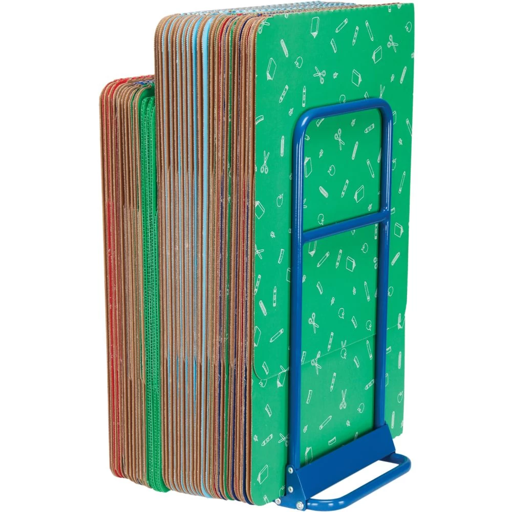 This sturdy metal rack keeps all your folded shields neatly compressed and out of the way from the flow of your classroom. The frame easily adjusts to hold 24 to 36 privacy shields. Assembly required.