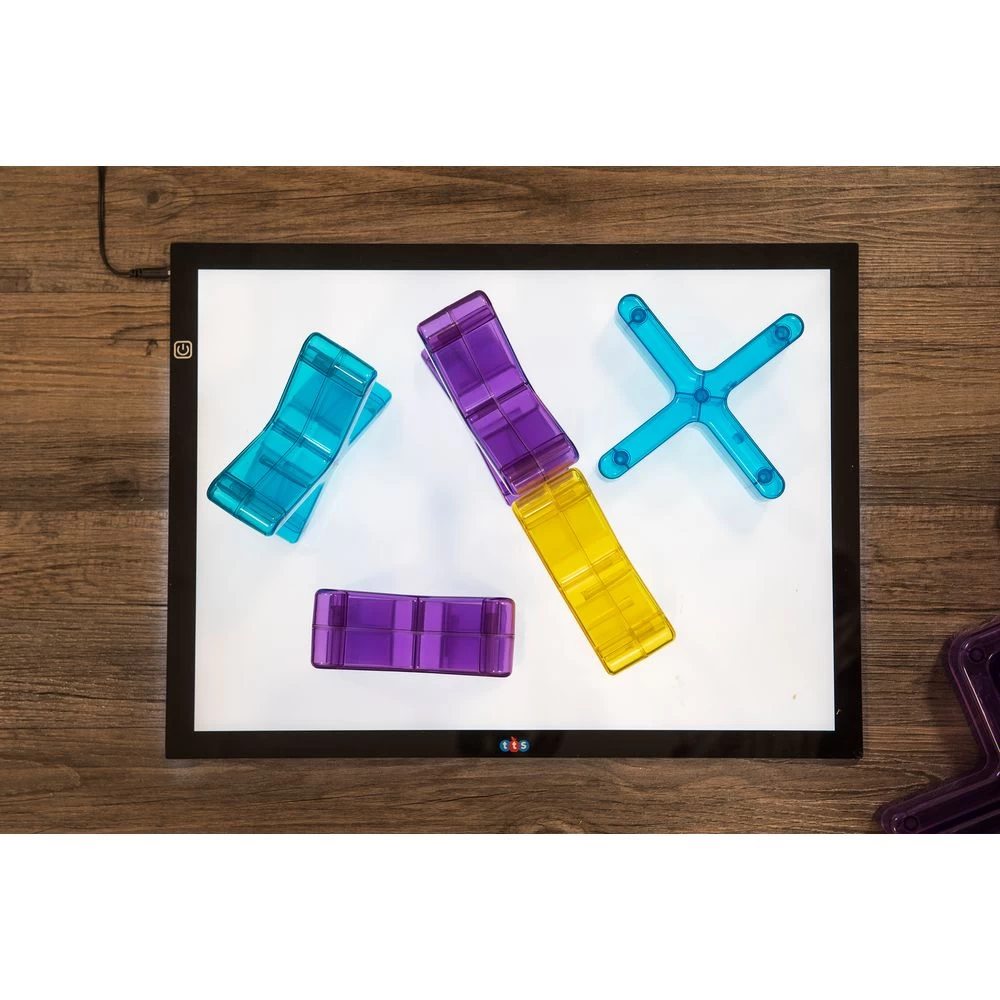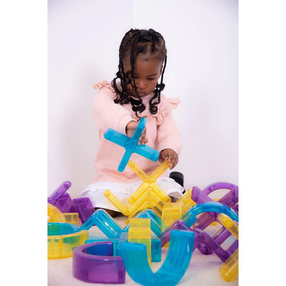 A set of 12 unique, translucent crosses that stack, nestle and tesselate offering absorbing, engaging and versatile possibilities. Use as construction pieces, on light panels, with the projector and for supporting schematic behaviors. Children will explore and experiment with these shapes, sequencing, patterns, classifying, and sorting. Build vertically, horizontally or interconnect them. Use with different objects and materials and are great on light tables. Encourages problem solving while also using fine motor skills.
