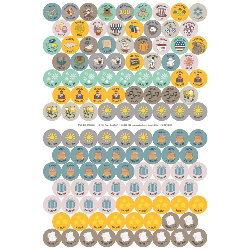 - GREAT FOR TRACKING CLASSROOM EVENTS AND BIRTHDAYS: The calendar pages come with 120 stickers, which you can use to mark the days of the month with students’ birthdays, fieldtrips, and other school and classroom events. Prep the whole year or keep everybody up-to-date with this cheerful and easy-to-use system!