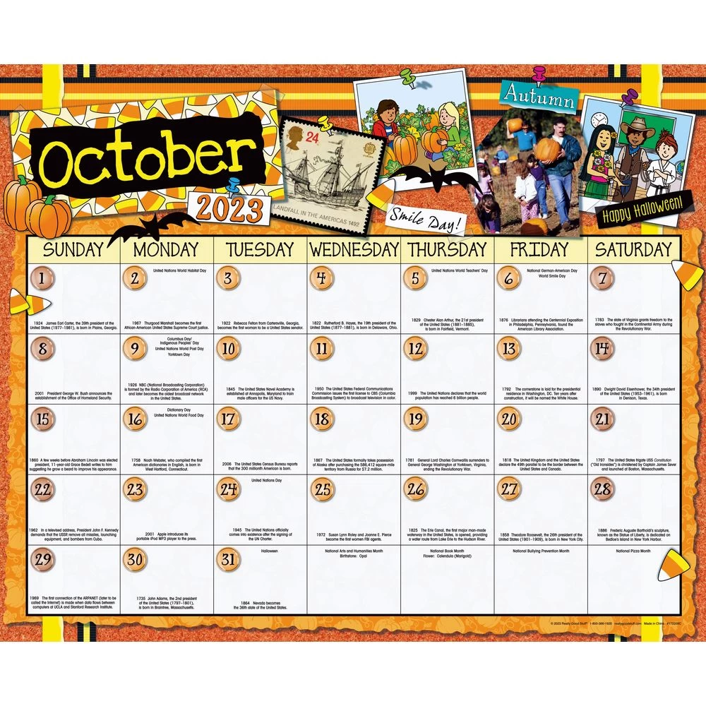 Double Sided Monthly Calendar Pages and Stickers 2023-2024. One side is for Primary, and the other is for Intermediate. Two in One! These bright, information-filled calendar pages feature fun facts for every day of the year. Each daily square offers plenty of room to record school and classroom events. Use the colorful stickers to highlight holidays, field trips, birthdays, and more. The 12 two-sided pages run from August 2023 through July 2024 and have primary art on one side and intermediate art on the other.