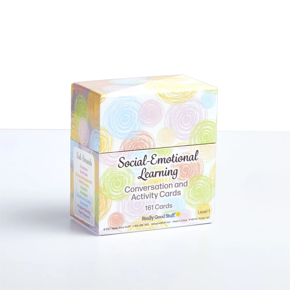 These Social-Emotional Learning Conversation and Activity Cards are perfect for use at school, or the home. With 150, double-sided cards there are plenty of activities and conversations that can be held. Included are 50 blank cards for you and your children to create additional cards using real-life scenarios that you may have encountered. The white side of the card is meant to beginners, or younger children, and the grey side is meant for older children, or those that have a good working-knowledge of social-emotional learning. This boxed set can be used in a variety of ways with a variety of different-abled and aged children.