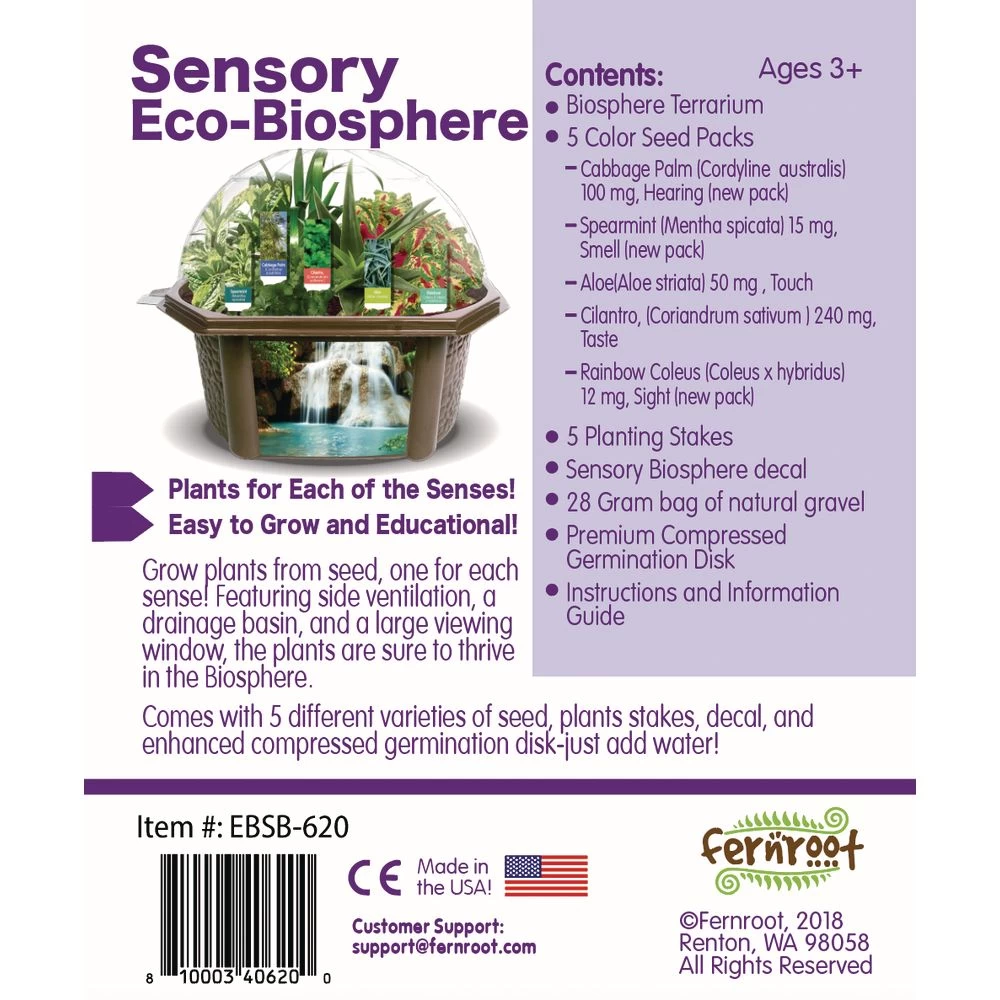 - INCLUDES: Biosphere Terrarium, 5 color seed pack, 5 planting stakes, sensory Biosphere decal, Premium compressed germination disk, Instructions and Information Guide