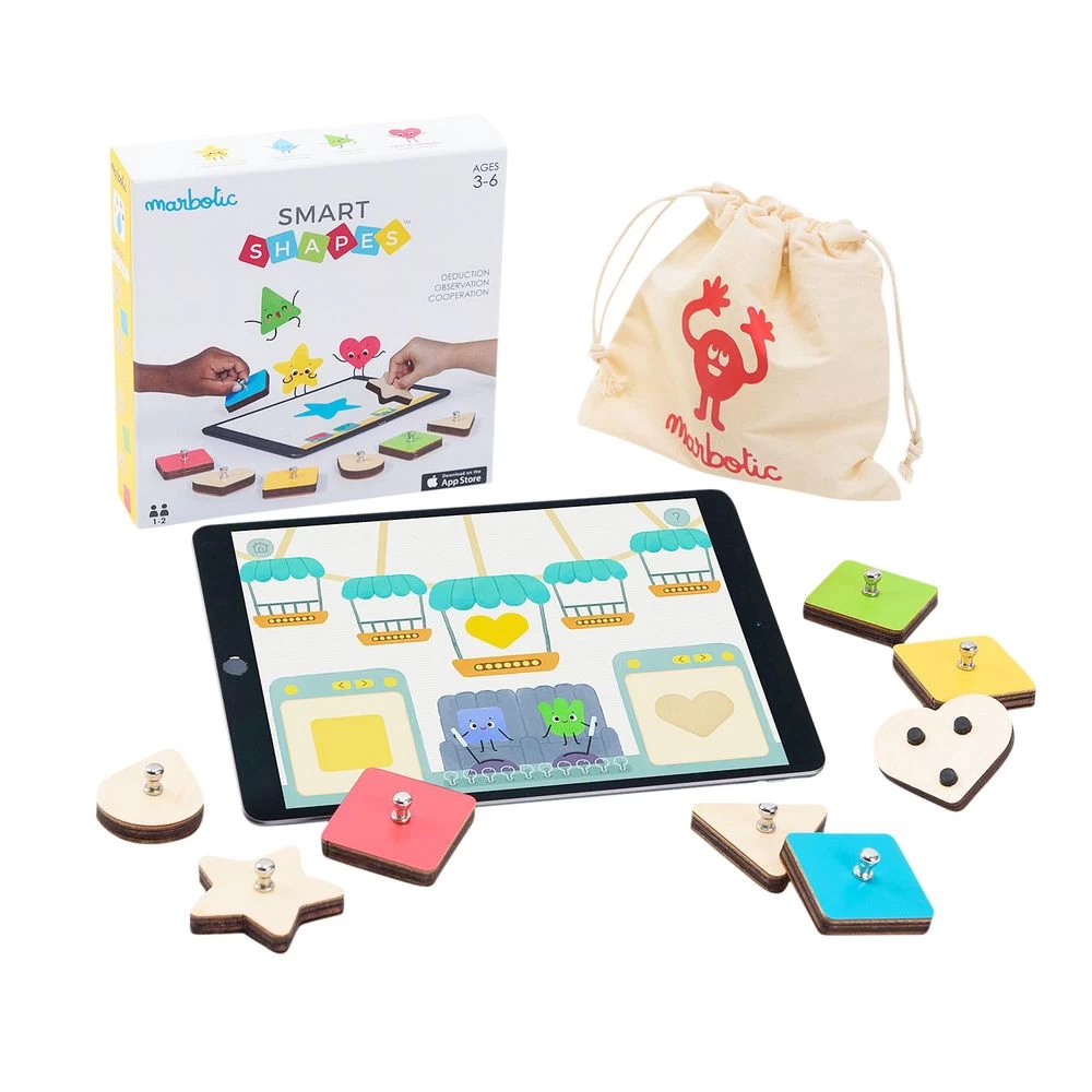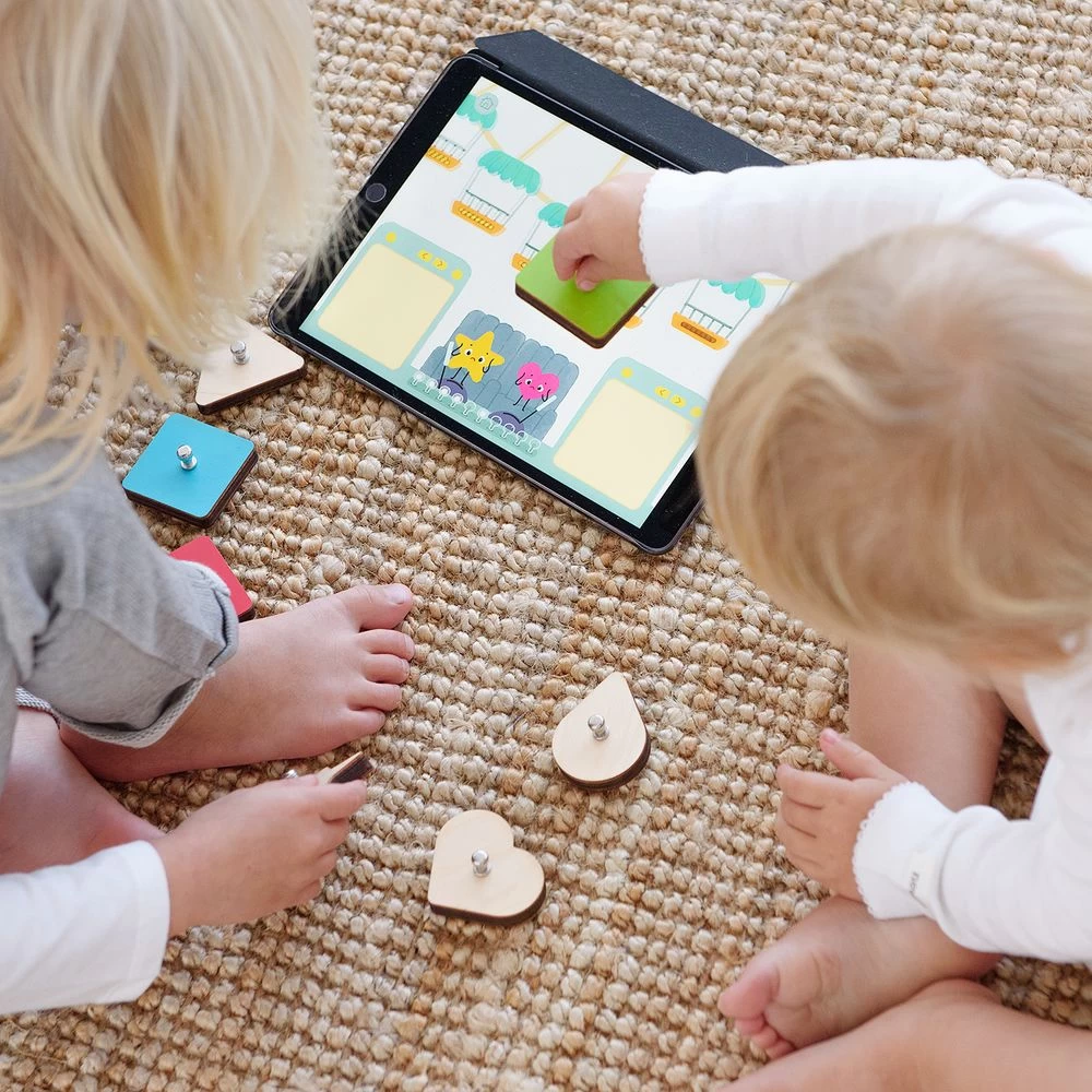 - BUILD COGNITIVE SKILLS: The kit enables your child to develop their communication and cognitive skills through two-player games. It contains 8 wooden shapes that are usable with the free app.