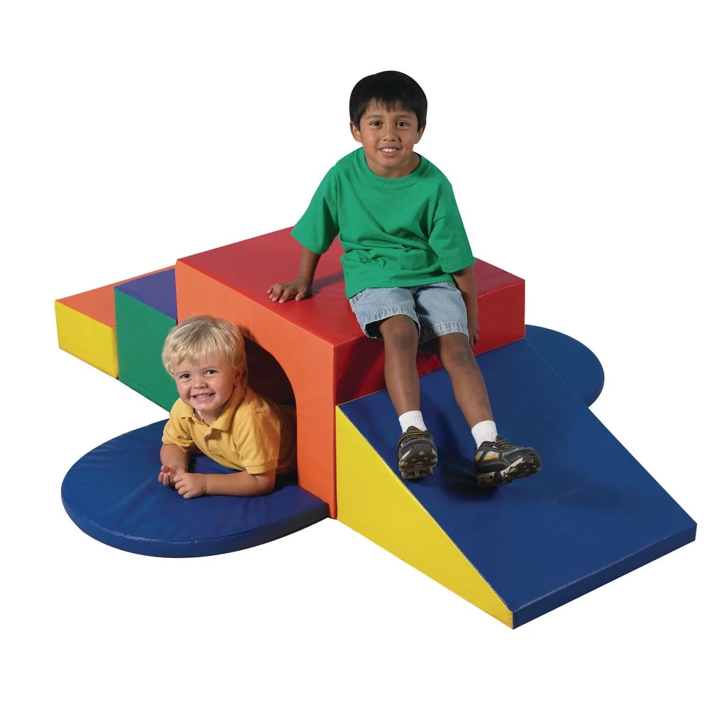 Curious climbers and crawlers will be captivated by all the fun choices of shapes and colors with this Soft Tunnel Climber. This playset encourages climbing, crawling, social interaction, and helps develop gross motor skills. Perfect for indoor use in daycares, classrooms and homes. Recommended for ages 9 months and up.