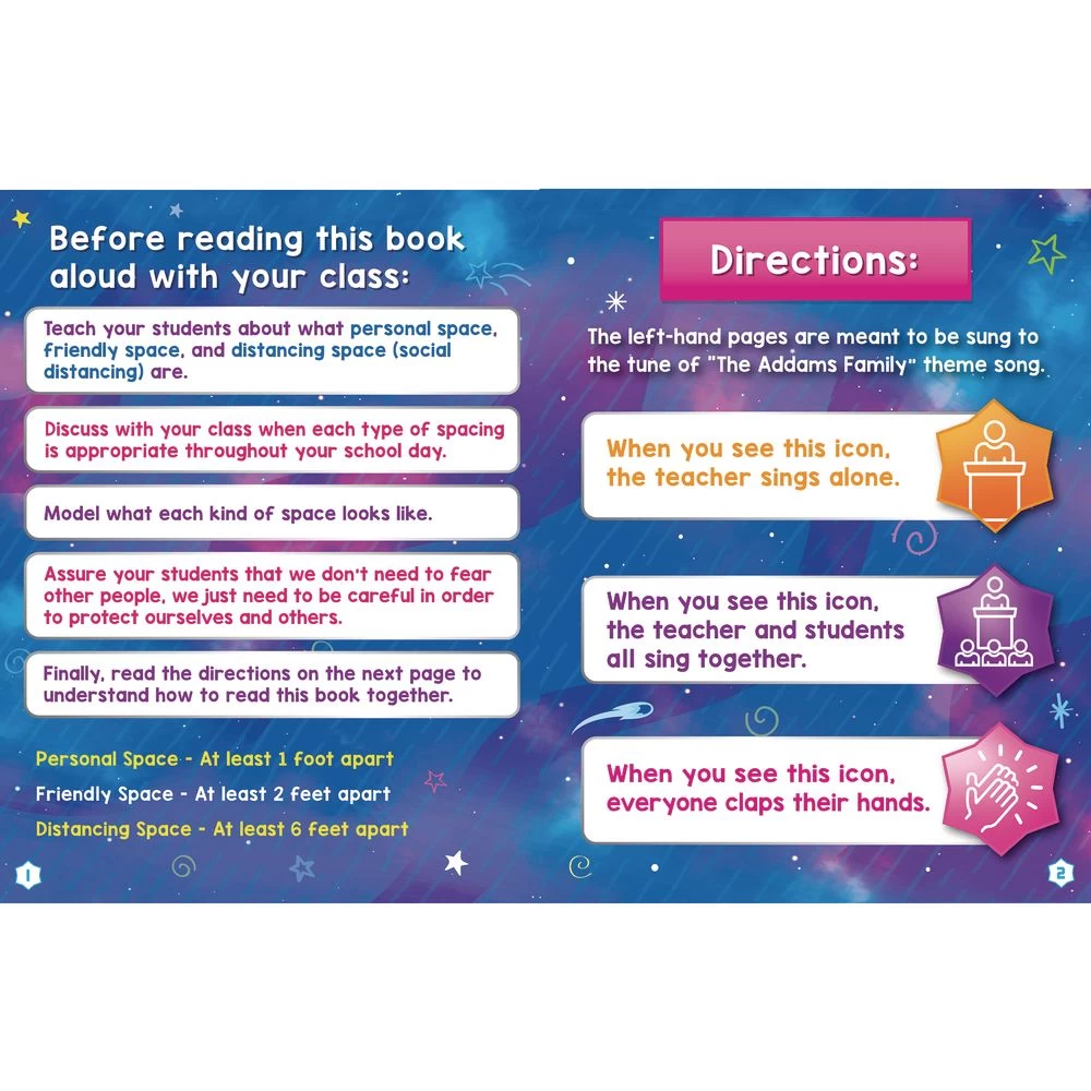 Use these journals and read aloud book to teach your students about personal space, friendly space, and distancing space (social distancing), which will be super important as they return to school post-covid.*TEACHER-CREATED: Really Good Stuff products are created by teachers for teachers.*KID-FRIENDLY: These products are meant to teach kids about distancing in a fun and stress-free way.*INTERACTIVE: Our journals are interactive to get students engaged as they learn.*FULL COLOR: Both the read aloud and journals are in full-color, making them interesting and engaging for students.*PART OF A LINE: We have an entire line of “space” themed products that are meant to support teachers as they return to school with distancing guidelines in place.