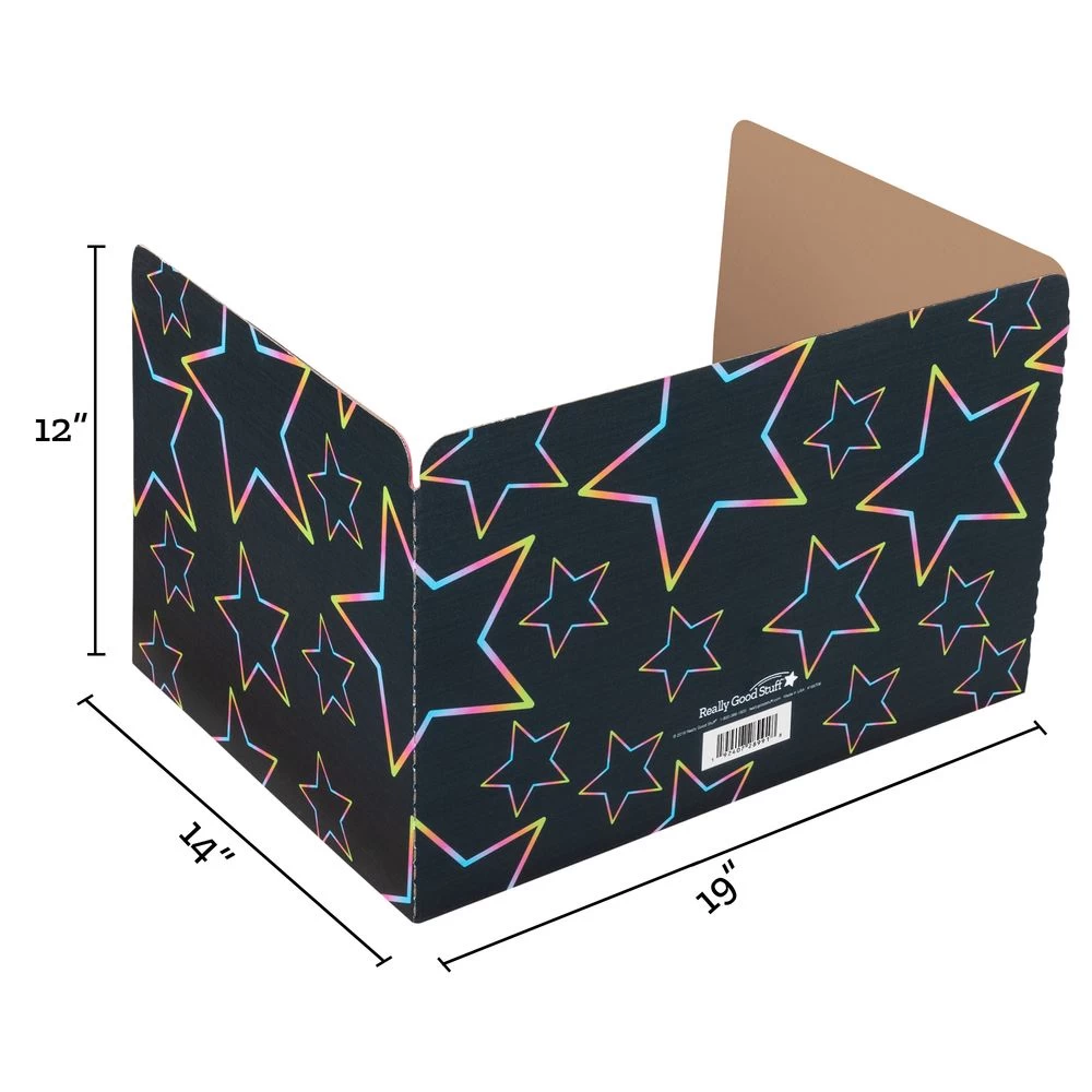 Keep students focused for testing, computer work, and classwork with these sturdy, black, corrugated-cardboard privacy shields with a neon- colored star pattern!*Attractive And Functional: Keep students’ eyes on their own work with these portable privacy shields. They’re great for everyday classroom use, computer labs, and writers workshops. Students also like to use them to set up “offices,” too.*Ideal For Testing: A great way to keep students focused for both pencil- and-paper and computer-based testing, privacy shields are a must-have for any teacher or testing coordinator.*Economical And Long-Lasting: Designed to stand up to heavy-duty student use, these corrugated cardboard shields will last for years.*Folds Flat: When not in use, these shields fold flat for compact storage and fit in most standard-sized desks.*Wake Kids Up With Neon Pop Stars! The bright star design really pops against the black background.*Combine With Other Tools And DÉcor In The Neon Pop Line: Lend your learning environment a bright and unified look with coordinating folders, journals, chair pockets, and plastic organizers from our Neon Pop collection.Give students privacy with these sturdy, portable, desktop privacy shields in black with a bright Neon Pop star pattern!<iframe width=”560″ height=”315″ src=”https://www.youtube.com/embed/n16j0D_ahdM” frameborder=”0″ allow=”accelerometer; autoplay; clipboard-write; encrypted-media; gyroscope; picture-in-picture” allowfullscreen></iframe>