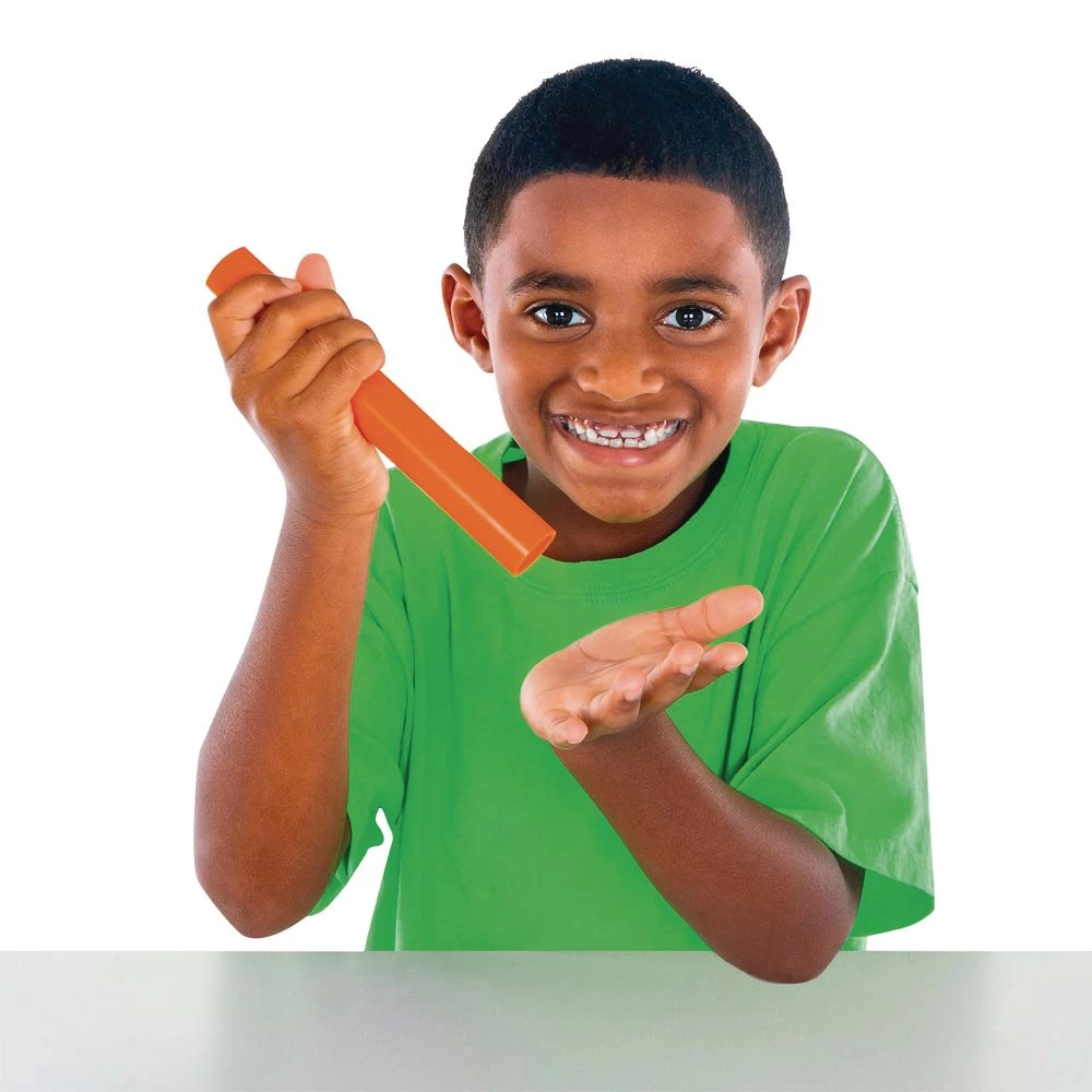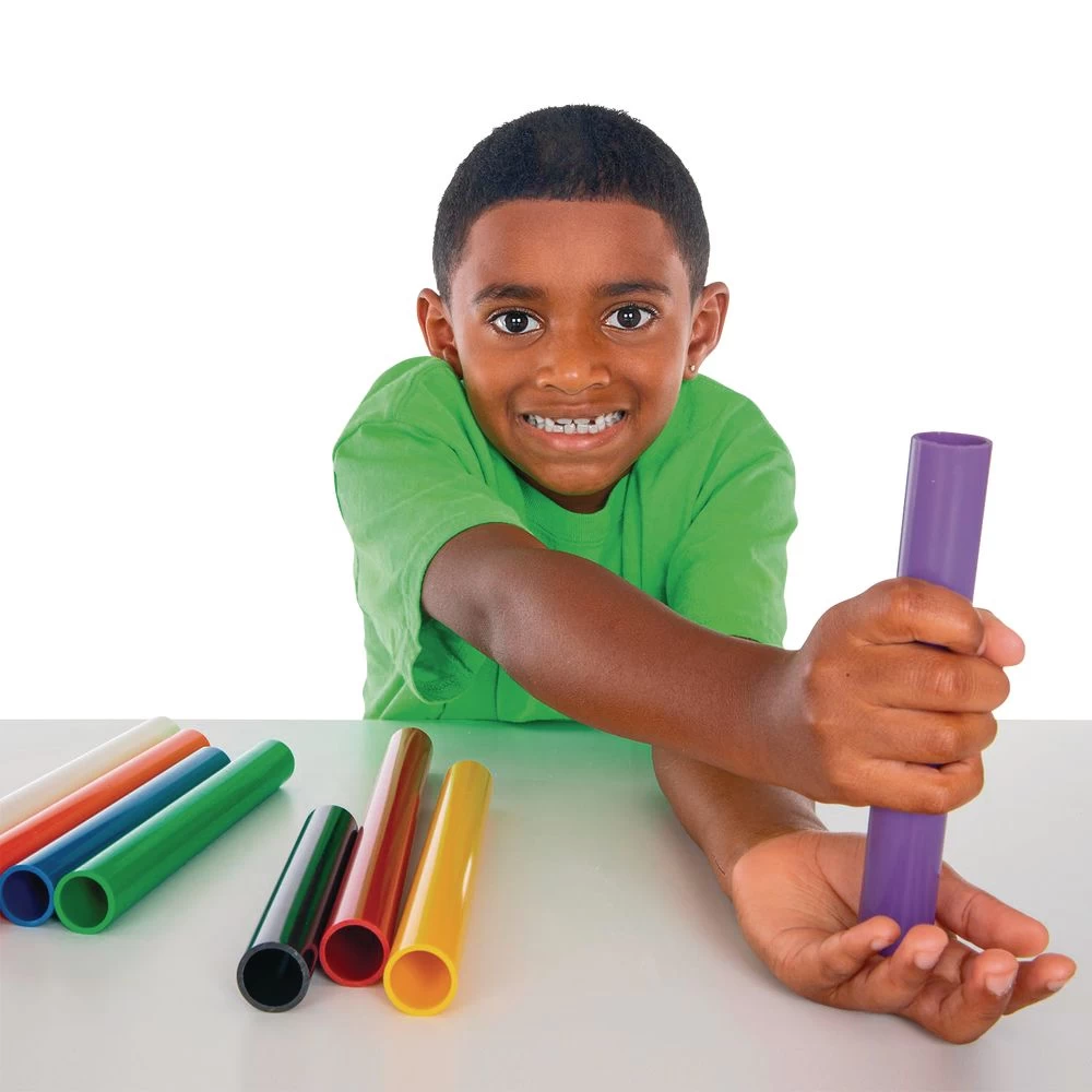 When you pound the colored Palm Pipe into the palm of your hand, it disturbs the air molecules inside the tube. The action of these molecules creates the vibration that becomes the note you hear.