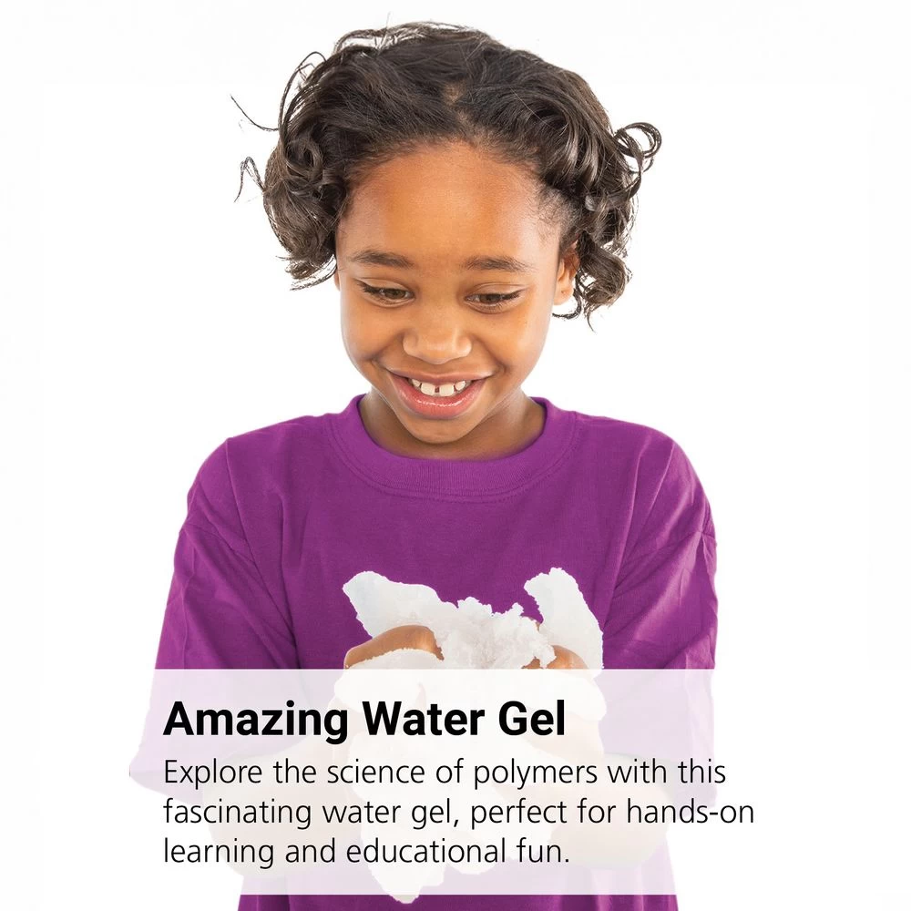 Water Gel is the perfect way to demonstrate how polymers work. The gel is a superabsorbent polymer that can help illustrate how farmers can save their crops in times of drought and what kind of material is in a baby diaper!