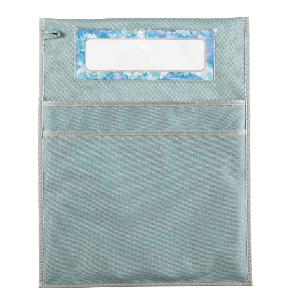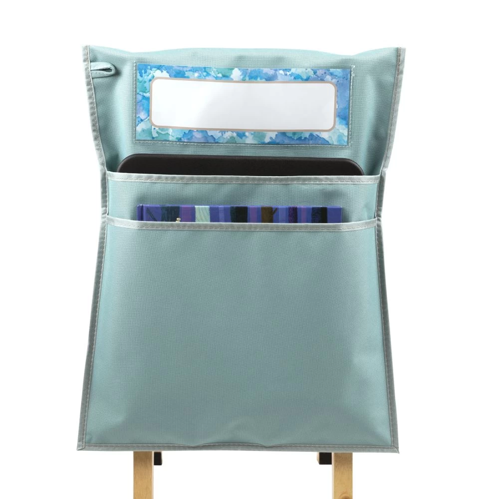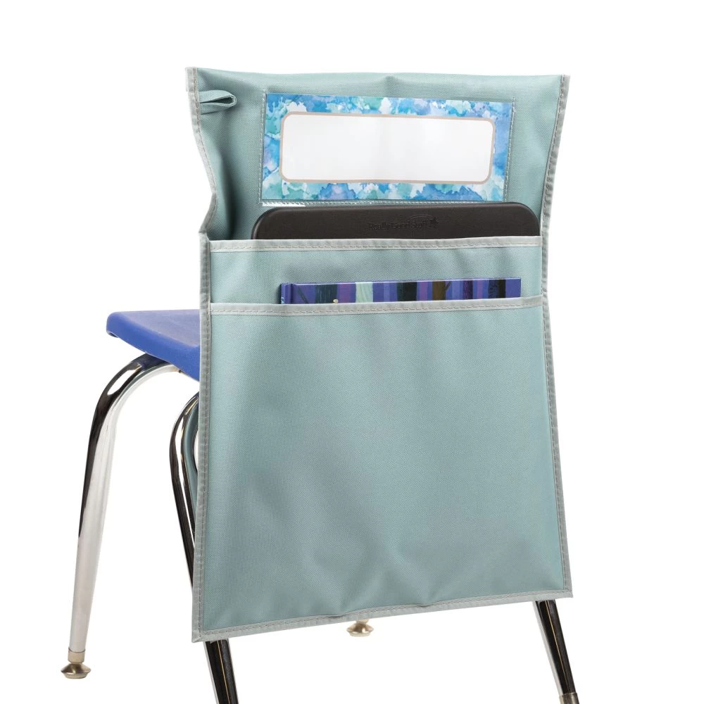 This calm colored chair pocket won’t take up any extra room and will allow students to store books, folders, even sit-upons on the backs of their chairs, freeing up space inside their desks and around the classroom. You get a single water colored chair pocket that measures 15″W x 19″H, with 2 large pockets. The inside width is 14.25″, and the back pocket is 13″ deep, while the front pocket is 11″ deep. The chair pocket also comes with 1 name tag. Each nametag measures 9.75″ x 3.5″. Our durable chair pockets are made of strong, woven nylon fabric designed to withstand whatever your students can dish out. Spot clean with soap and water. This chair pocket features a roomy pouch for books and supplies, a stitched-on loop for hanging, and a clear sleeve to display the name tag (included)! Each chair pocket is designed to fit most standard elementary student sized classroom chairs. They will be the perfect addition to your classroom. Research has shown that cool and calm colors allow students to maintain higher focus levels. If you want to create a cool and calm color scheme in your classroom, this chair pocket will be the perfect addition.