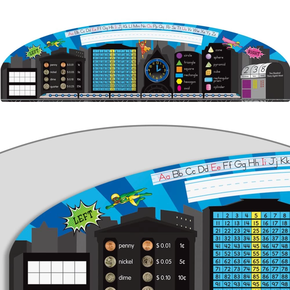 - VERSITILE LEARNING: More than a name plate, Really Good Stuff’s desktop helpers feature a 120 grid, capital and lowercase letters, a place value chart, a 0-30 number line, left and right indicators, a clock, 2-D and 3-D shapes, coins, double ten-frames, and plenty of space for students to print their name.