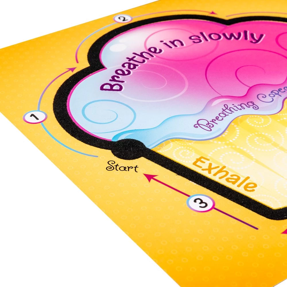 Students can calm themselves down when they encounter stress by tracing the relaxation steps with their fingers and breathing as they go.