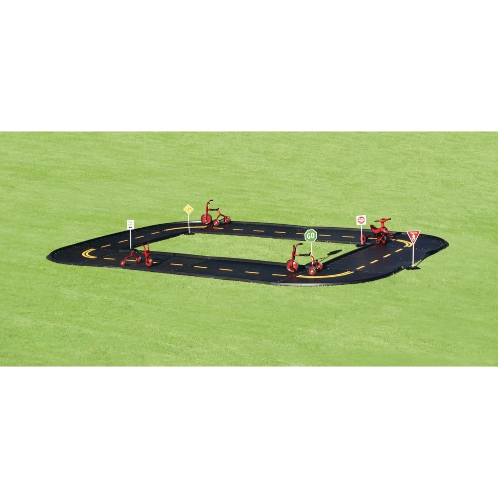 Trike paths made easy! Now you can have a designated trike path on your playground without having to excavate the ground or form and pour rough, unsafe and expensive concrete. The easy to assemble design is made from safe high impact-resistant plastics and includes stainless-steel, tamper-resistant hardware. Includes 12-inch ground stakes for easy installation. Drain holes around the inside and outside edges allow water to drain off the track. Approximate time to assemble is 2.5 hours and requires two people. Product measures 26’4 inches L x 18’4 inches W x 2 inches H and weighs 360lbs.