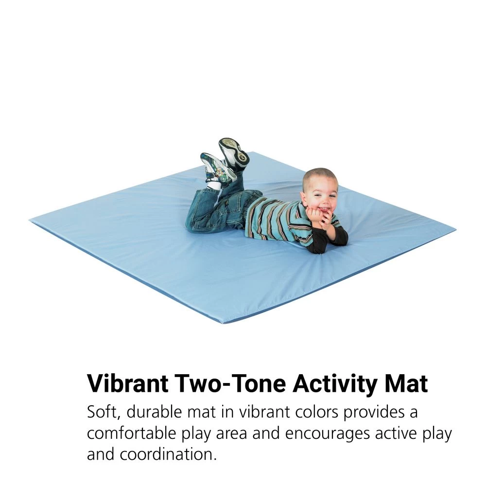 Bring the soft, quiet look of the outdoors inside with this Blue Two-Tone Activity Mat. Create a cozy spot for infants and toddlers to be active or take a break in preschools, daycares, or at home. This plush foam play mat encourages the development of gross motor skills as little ones can safely crawl, scoot, and roll. Suitable for ages 6 months and up.
