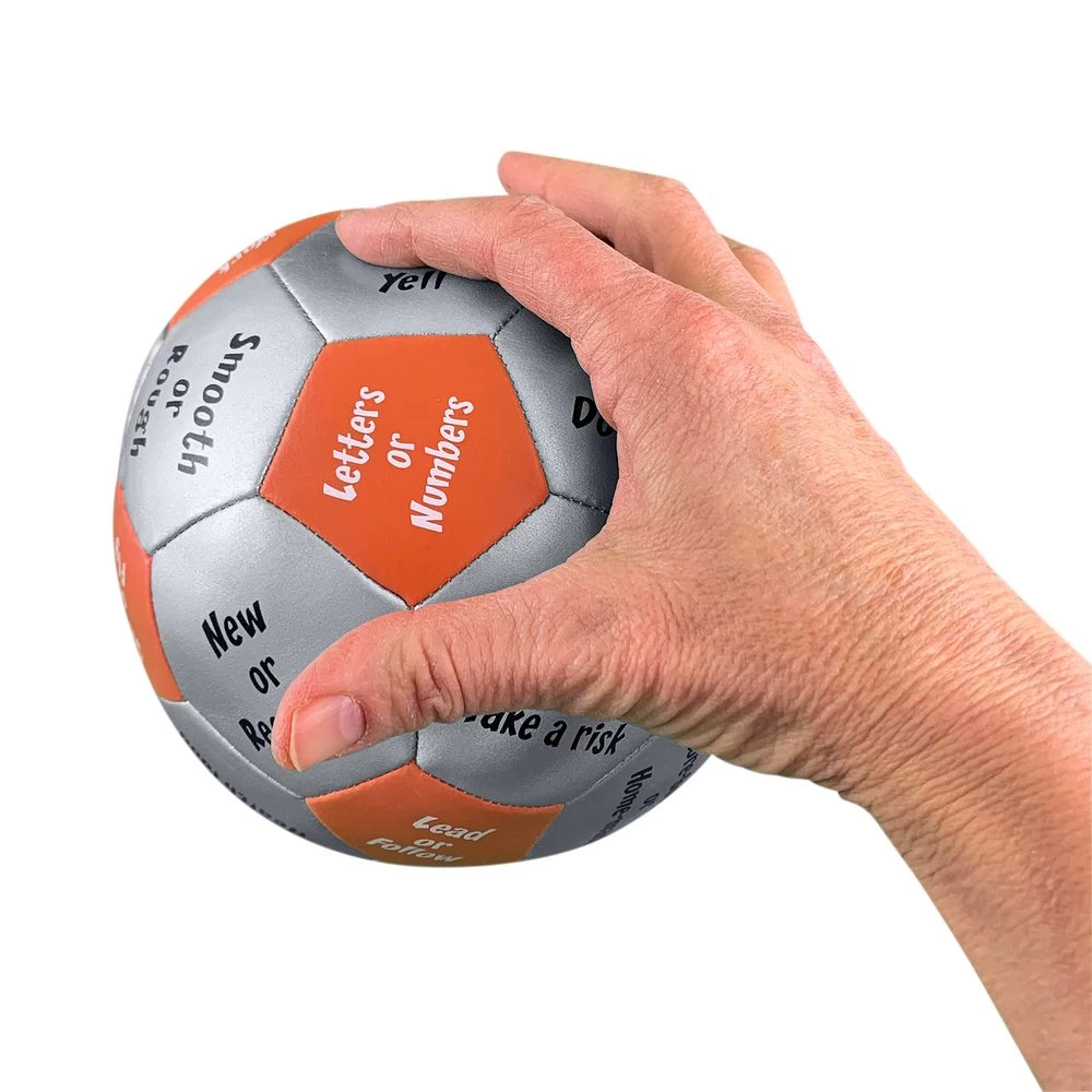 Thumball is a 6″ stuffed ball that looks like a soccer ball, but is soft and safe to use at work, school and home.
