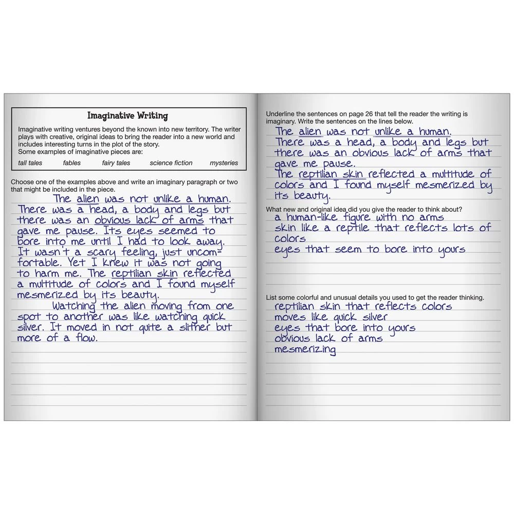 These journals help students practice descriptive, narrative, imaginative, expository, and persuasive writing. Each 12-page section includes a definition of the mode, scaffolded pages, prompts, questions, and checklists, and 3/8″ lined pages for students work.